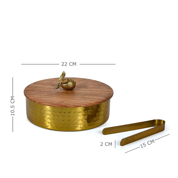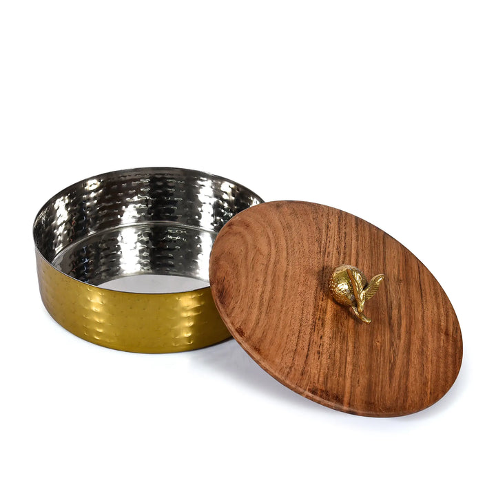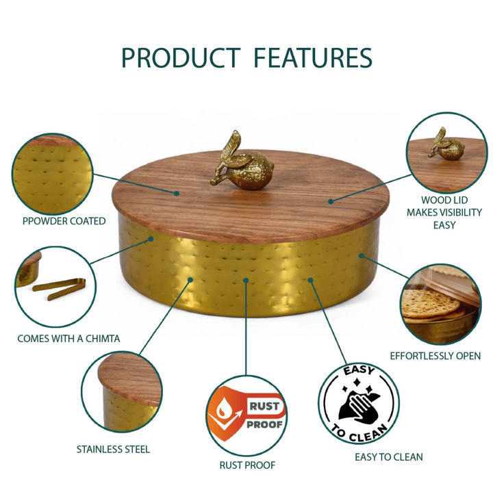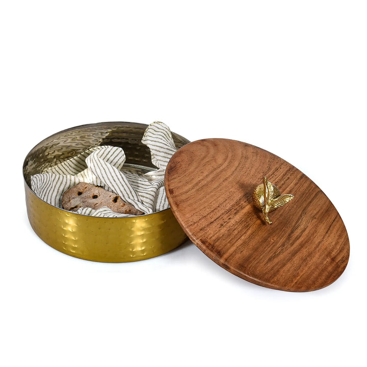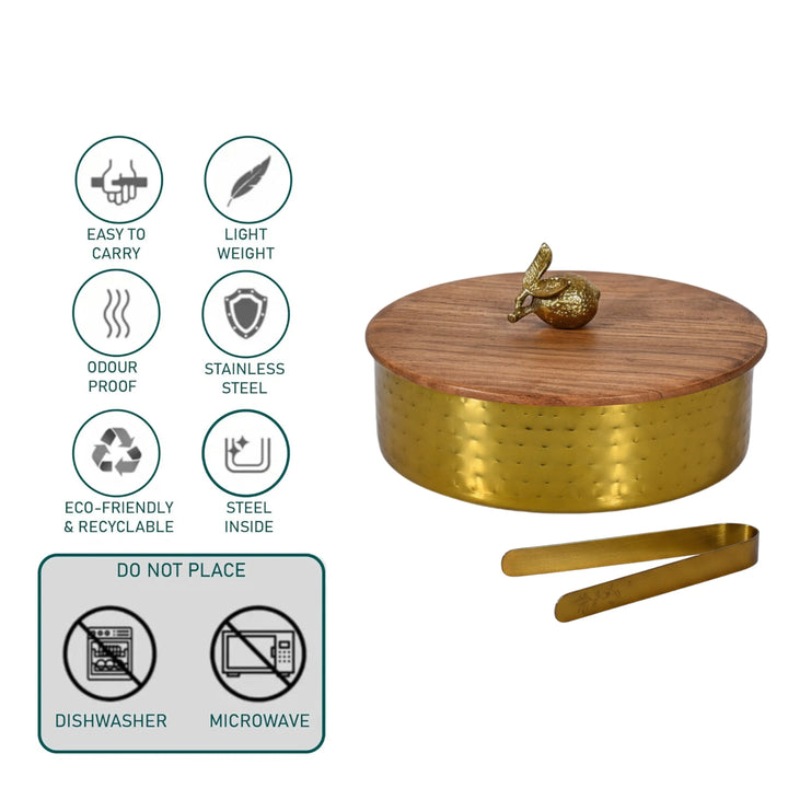 Elan Dabbahs and Days Roti Box with Chimpta Wooden Lid (Gold & Acacia -1500 ml)