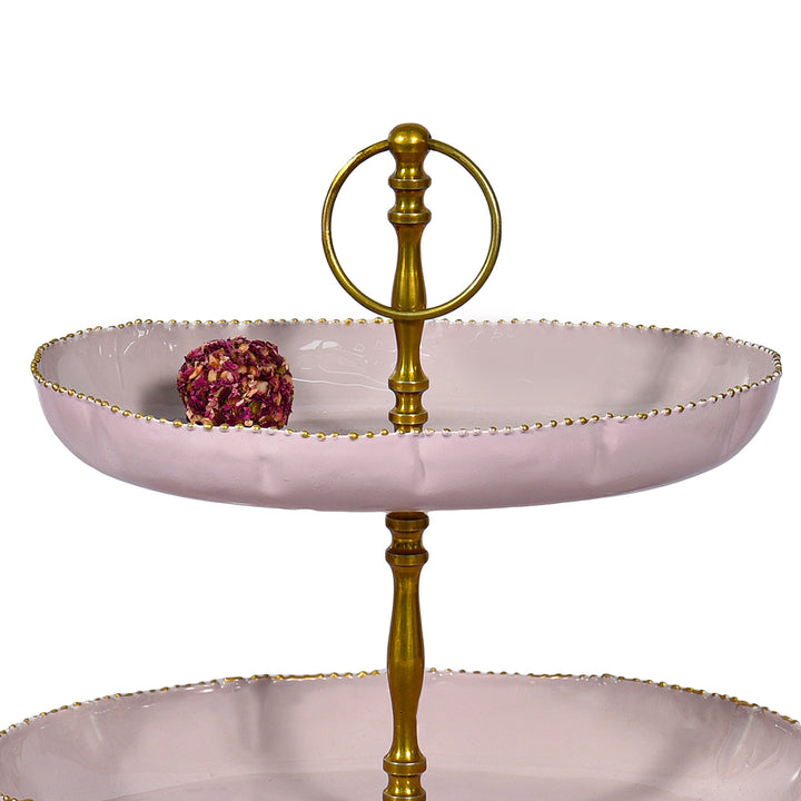 Are you looking for an exquisite way to display your cupcakes and desserts? The Elan Kesar 2-Tier Cake Stand is crafted to impress — turning every celebration into a visual delight. Inspired by the organic contours of the Aravali Hills surrounding the majestic Amber Palace, this stand combines traditional artistry with modern elegance.Handcrafted from premium mild steel and accentuated with molten brass detailing, it celebrates the raw beauty of natural materials. The soft nude powder-coated finish contrasts beautifully with the golden brass highlights, creating a sophisticated yet warm aesthetic.Perfect for weddings, birthdays, anniversaries, and festive gatherings, this cake stand makes your dessert display unforgettable. Whether used as a centerpiece or a functional serveware piece, the Elan Kesar stand adds a touch of luxury and timeless charm to any occasion.