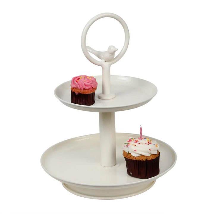 Elan Tweet Two Tier Metal Cake and Cupcake Stand (Off White)