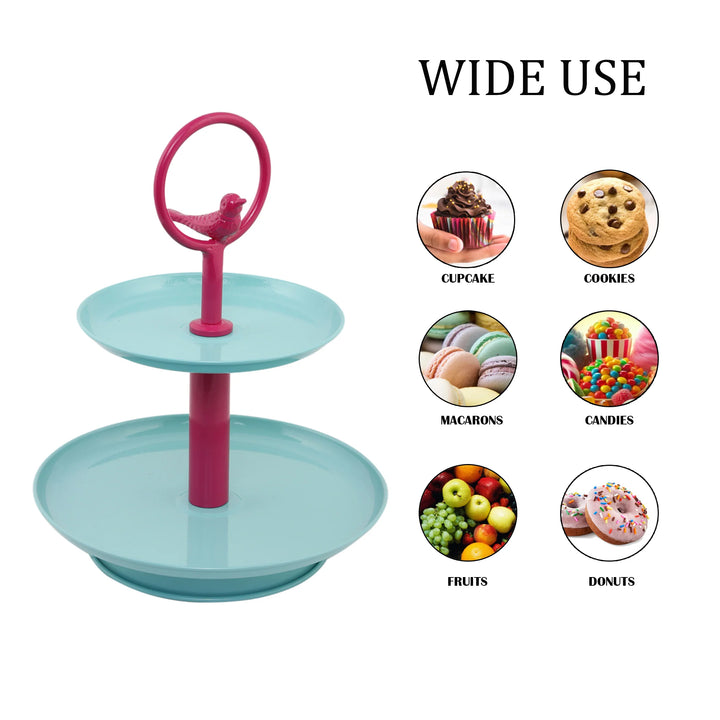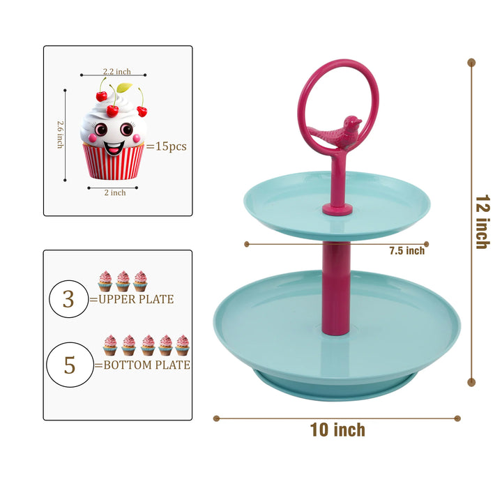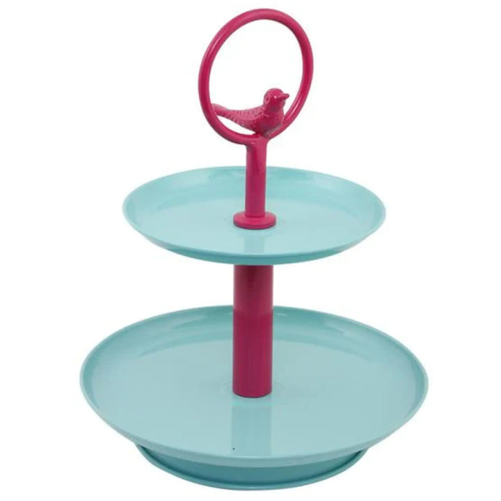 Elan Tweet Two Tier Metal Cake and Cupcake Stand (Aqua Pink)
